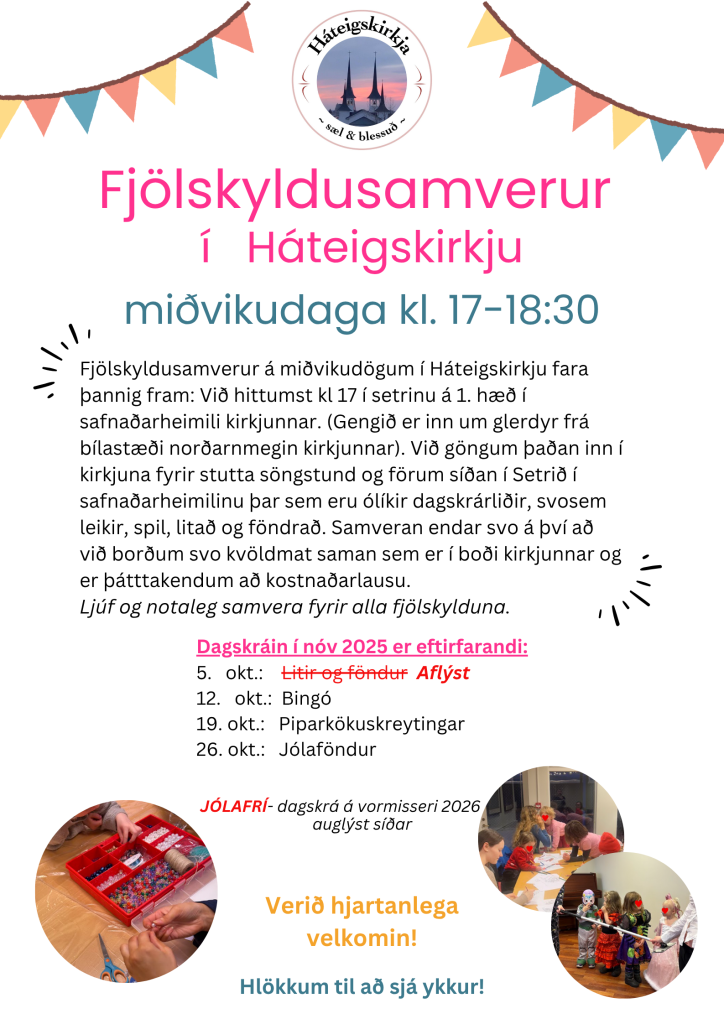 ATH ! – Dagskrá fyrir Fjölskyldusamverur á haustmisseri 2025 verður auglýst síðar.