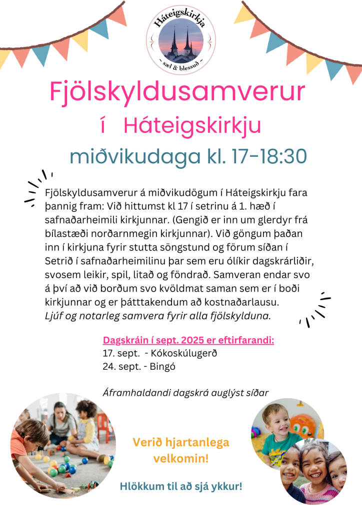 Fjölskylduguðsþjónusta kl. 11. Sr. Jón Ásgeir Sigurvinsson prédikar og leiðir stundina. Drengjakór Reykjavíkur syngur undir stjórn Þorsteins F. Sigurðssonar. Organisti er Erla Rut Káradóttir. Kaffi, djús og kruðerí í safnaðarheimilinu að guðsþjónustu lokinni. Verið öll hjartanlega velkomin.