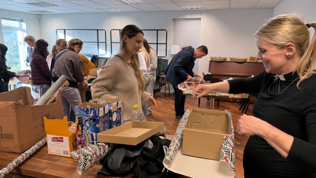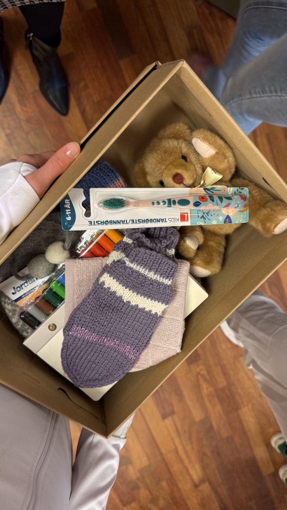 Háteigskirkja sér um að koma frágengnum jólakössum til KFUM og KFUK á Íslandi, sem sjá svo um að koma jólagjöfunum til munaðarlausra barna í Úkraínu.