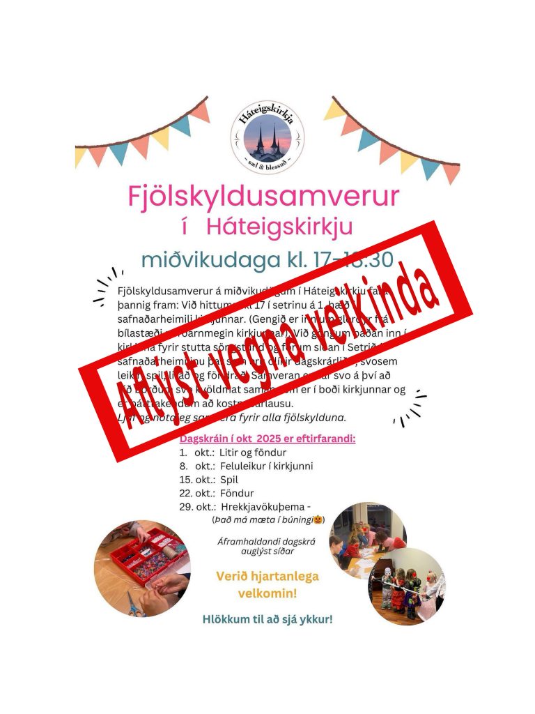 VINSAMLEGAST ATHUGIÐ – ÁÐUR AUGLÝSTRI FJÖLSKYLDUSAMVERU í dag, miðvikudag 29. okt., er AFLÝST VEGNA VEIKINDA ! Posted on 29/10/2025 by Rakel Halldórsdóttir